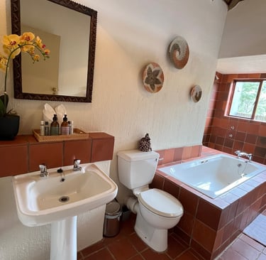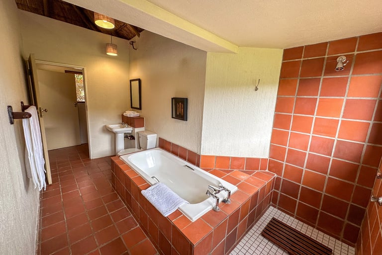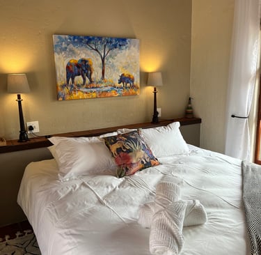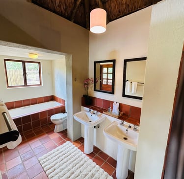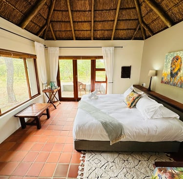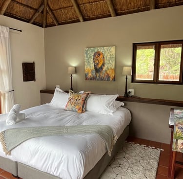 Why come to The Lodge? There are a hundred reasons why you should spend time here. The best way is to come and experience it for yourself. This is a bushman's lodge. To be at this lodge is to spend your time with the best that nature has to offer. We use the best of the essentials that are designed to keep you comfortable and connected with the bush. Wake up after a long sleep in your plush king-sized bed to the sound of the river and waterfalls. Take a shower in your indoor/outdoor high-pressure showers. Or maybe wake up and watch/listen to a leopard, a herd of elephants, a rhino and her calf, a herd of buffalo or even a pride of lions roaring back and forth from the comfort of your bed! Lounge around in a hammock on your private patio that doubles as a hide. Birdlife is also amazing here in the river valley. So, it's the best of everything here in the Bush. It's not too glitzy and glamorous to distract you from the wilderness, and not too rustic to where you're not comfortable, rather it's the perfect spot in the middle, and the best location in the Reserve if you're interested in connecting with nature. If you want more than just a taste of Africa, then come to Lost Leopard Lodge for a chance to find yourself here.